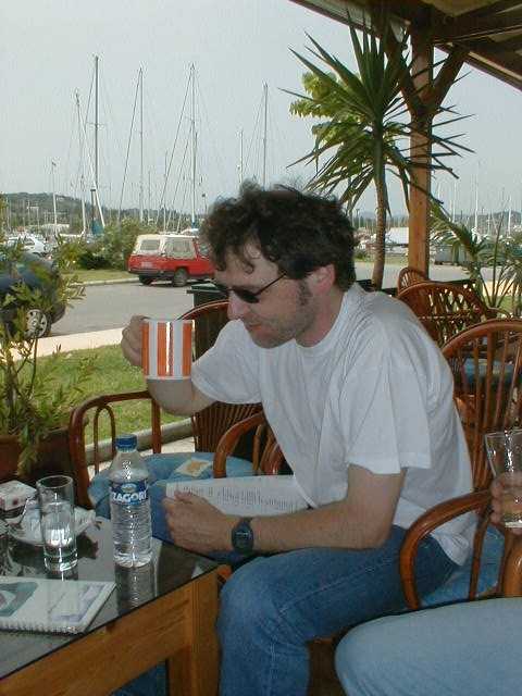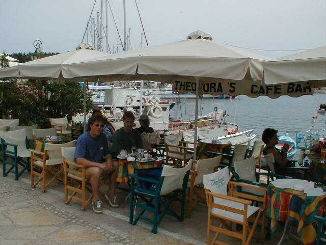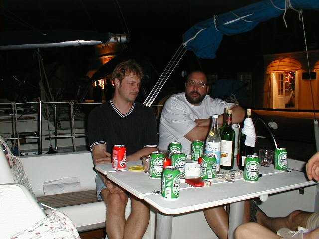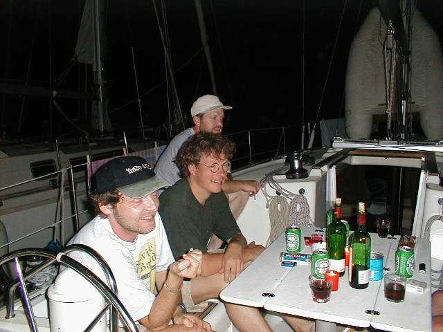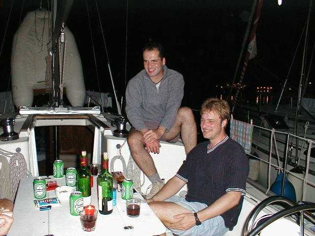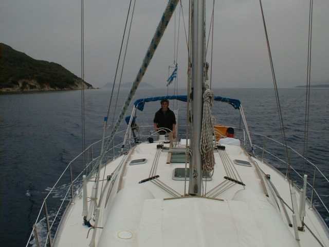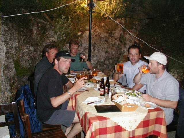 Nachdem Christof, Peter B., Peter S. und Markus am Donnerstagmorgen mit dem Beiboot einkaufen waren, ging unsere vorletzte Etappe in Richtung Korfu. Wir ankerten nach 22,5 Seemeilen in der Bucht Valtou am Festland. Es war etwa die halbe Strecke bis zur Marina Gouvia. Am Abend wurde ein Großteil des Proviants verbraten. Es war ein köstliches Nudelgericht, welches uns unser Meister der Köche, Peter Baldus servierte. |