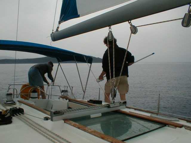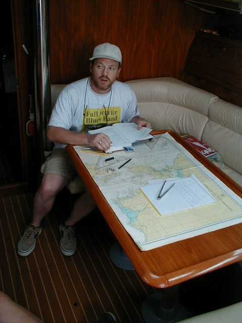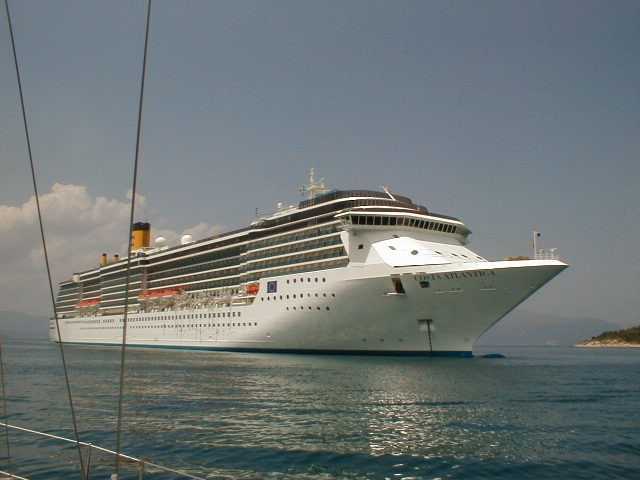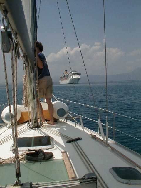 Peter bei der Kartenarbeit | Kurz vor Korfu Stadt | Dagegen ist unsere Summerwind winzig | |