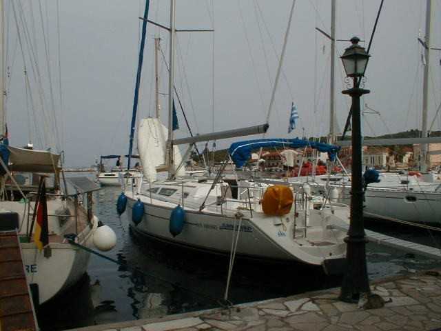 Als wir Samstags mit der Übernahme der Yacht und dem Beladen fertig waren, entschieden wir uns, nicht mehr auszulaufen. Wir gingen in Gouvia Essen, übernachteten an Bord und dann ging es los. Unser erstes Ziel war der Fischerhafen Gajos auf der Insel Paxoi. Wir legten die 37,8 Seemeilen leider unter Motor zurück, da Wind Mangelware war. |