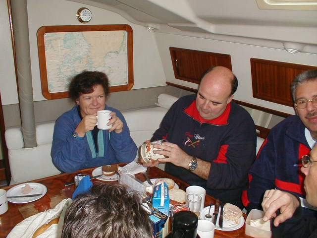 Focksegel angeschlagen hatten, ging es zum Aufwärmen unter die Duschen